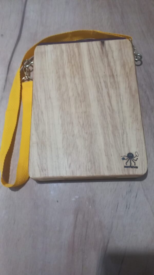 Instrumento artesanaL de madeira e fantoches, confeccionados pelo próprio Marcelo Serralva e sua esposa, Marissa de Britto.