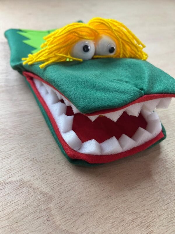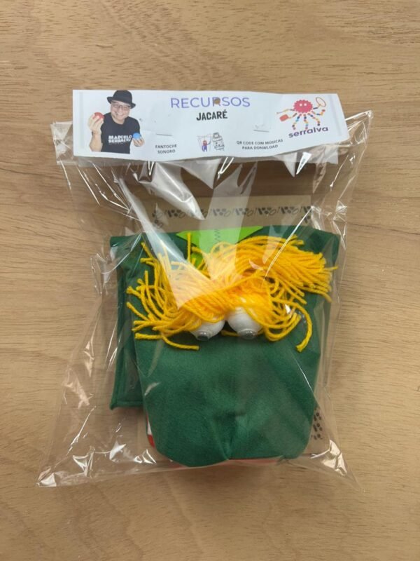 Fantoche sonoro criado por Marissa de Britto – JACARÉ SONORO, da linha de recursos de Marcelo Serralva.